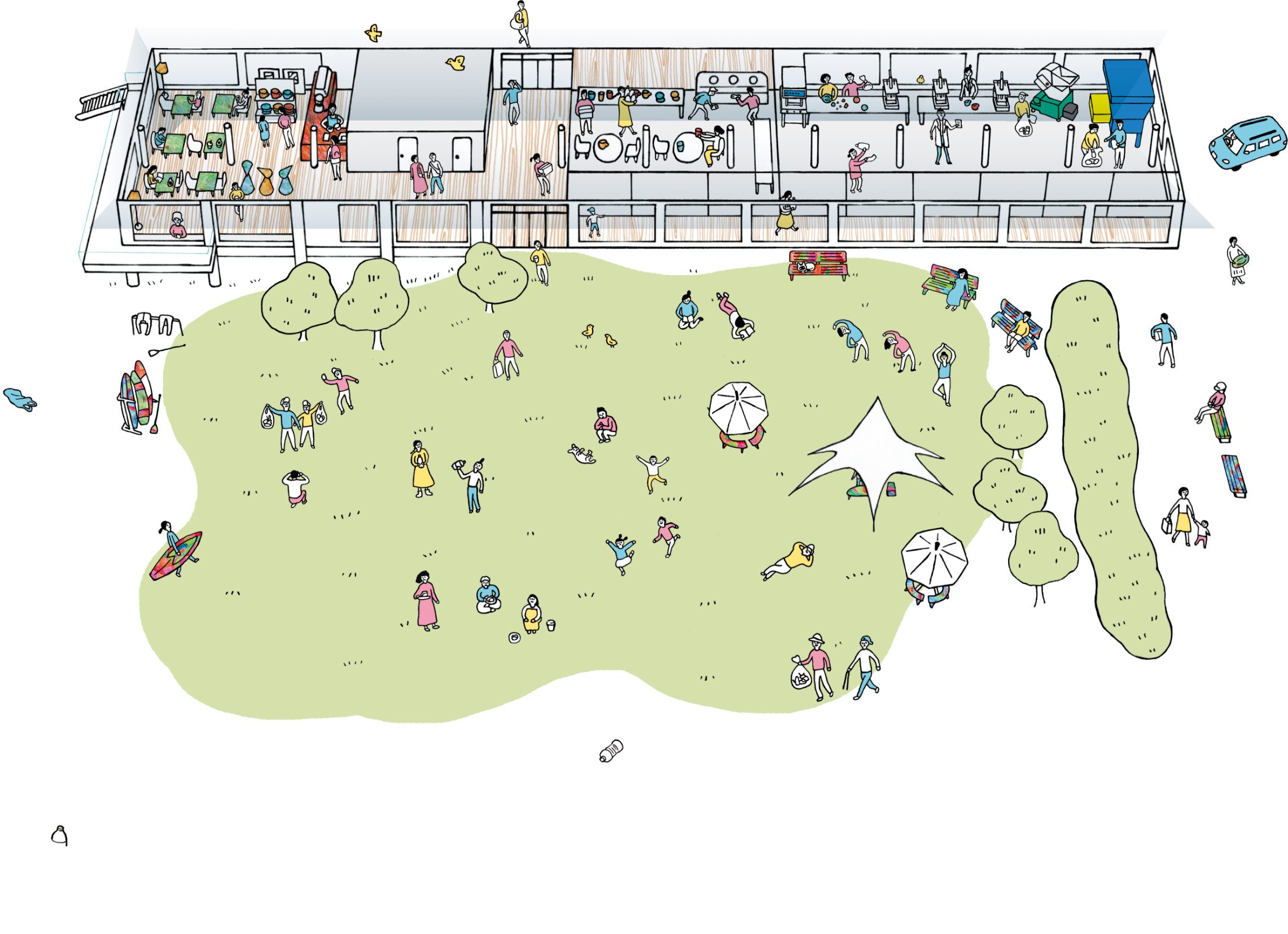 人が集まり、体験し、考え、未来の暮らしのヒントを知る。